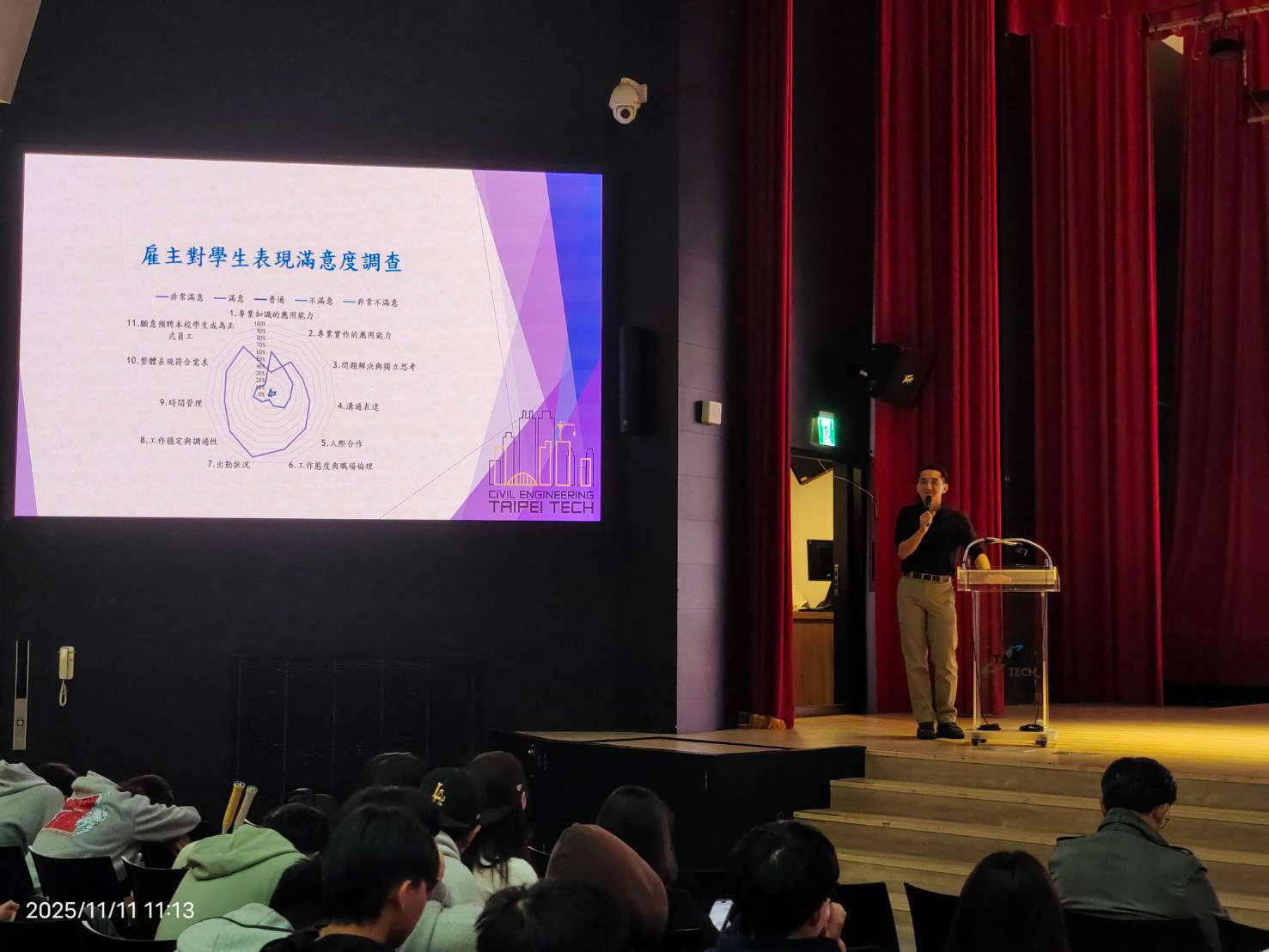 本次114.1學期的系周會於11/11舉辦。首先邀請今年暑期前往各企業實習的同學上台分享實習心得,內容涵蓋工作內容、學習收穫與職場觀察,互動氣氛熱烈。隨後由實習委員楊元森老師補充說明,整理雇主對本系實習生的各項評價與學習建議,協助同學了解自身優勢與未來改進方向。